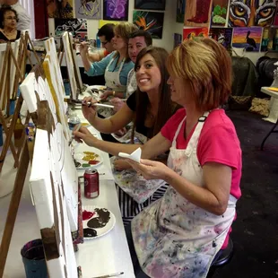 Fun place. A friend was getting married this weekend and wanted a low-key bachelorette party, so we went here to do some sipping and some painting.These types of places are popular in Michigan too, where I live, but I had never done it before. I'm not an artist by any means, but I'd like to think my painting came out okay :) I'll just have to figure out a way to frame it or hang it, at some point. The woman in charge was very efficient too, and very friendly. Painting was $35 and she collected cards and cash from us at the end of the session, too.I'd come back here again sometime if in the area.