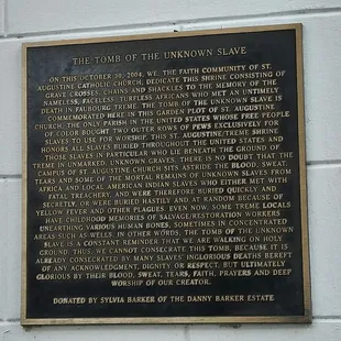 What an impressive church! I am not religious myself, but have a high regard for those who are. This is listed on the Louisiana African American Heritage Trail because of it's historical beginnings. It is the oldest church in Louisiana, during a period when Catholicism was the only allowed religion in Louisiana. From the beginning, people of color had to fight for space in religion and a Battle of the Pew was started. In the end, people of color owned three pews per one white pew and there were pews designated for the enslaved in the back. The day I went, a person of color was leading the service. There was a nice mix of white and people of color in the audience. The auditorium is closed for repairs right now. Everyone seemed accepting. The Tomb of the Unknown Slave is along the side of this church. It isn't as fancy as St Louis Cathedral. It is in the Treme and set away from the Quarter. They do have a parking lot in back.