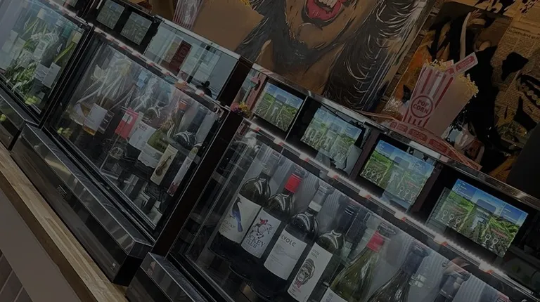 a display of wine bottles