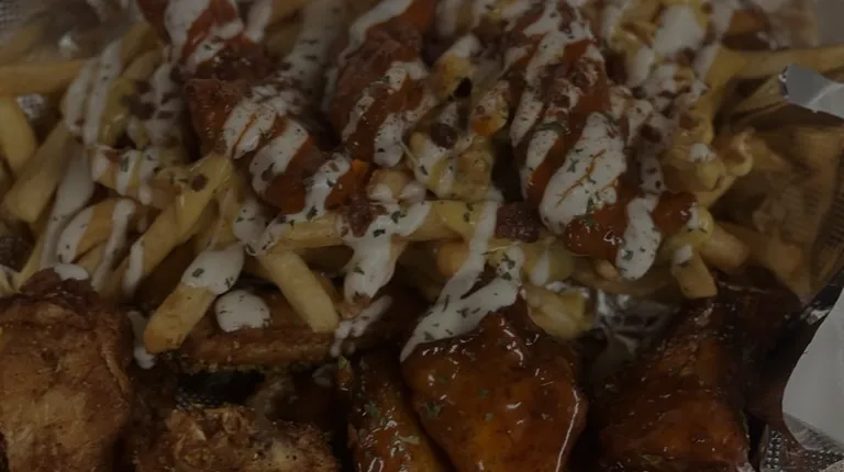 Jamaican jerk and hot lemon pepper wings and loaded fries