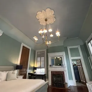 From the moment we arrived we were enamored with the look and feel of the house. It has the requisite wrought iron fence that is the signature of garden district homes and a charming sitting area on the front porch. We arrived early, after calling ahead to ask, and Mark was gracious enough to let us check in early as our room was ready. The housekeepers are lovely and they helped us initially, then Mark arrived from walking the two house cavalier king charles spaniels. We were helped to our room and thoroughly advised on all the amenities of the house. We felt very welcomed. We stayed in room 5, the Carrollton. It featured a queen size bed on a very high frame, step stool included lol, as well as a private bath. Also in the room was a large wall mounted tv and a king louis style chair and vaulted ceilings throughout. There is an honor bar on right next door with sodas, coffee, tea, and some various adult beverages. Downstairs features a very relaxing living room with a Sazerac bar. The dining room has ample space for enjoying the fresh baked biscuits and pastries as well as fresh fruit and yogurt parfaits. This home is convenient to Commanders Palace, Lafayette cemetery #1, and the St. Charles street car line. We truly enjoyed our stay. If you have the chance, get Moira from Two Chicks Walking tours to show you the garden district.