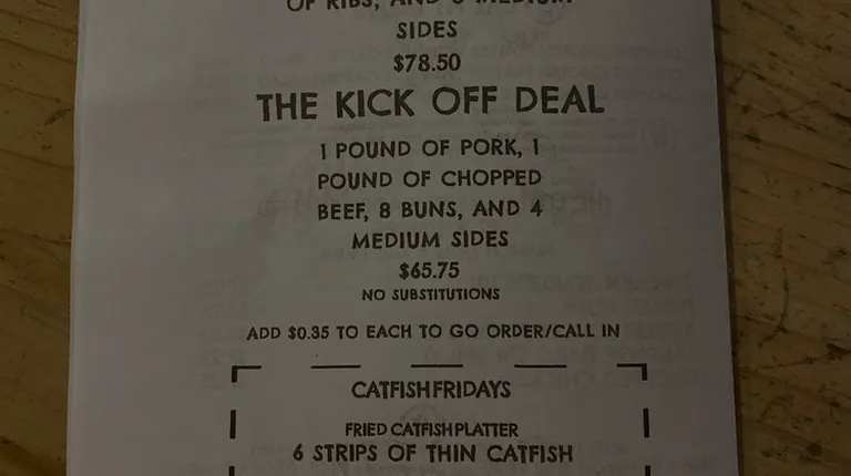 We picked up 2 orders of ribs with Mac & Cheese and Baked Beans as sides On our way back from the Franklinton Fair. The food was outstanding. I eat bbq quite a bit and these ribs are the best I've ever had and the baked beans were amazing (loaded with pieces of brisket).