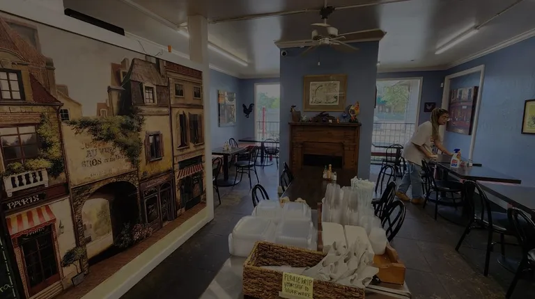 Small friendly cafe where you order at counter and they bring to table. Self serve coffee and tea. Tasty iced tea with fresh lemons. Nice selection of sandwiches, salads and tartines. Indoor and outdoor seating. Salad Nicoise was generous with fresh greens, olives, roasted red peppers, boiled egg, palm hearts. The tuna was canned tuna slightly sweet. Perhaps used sweet pickle juice. It would have been MUCH better if an actual piece of fresh tuna. Realize this would make it more expensive but it makes a big difference. Steak sandwich also generous. Served on a warm crusty ciabatta bun. Spicy sauce. Plenty of meat. A side of bean salad. I heard their king cakes are good here but didn't sample.