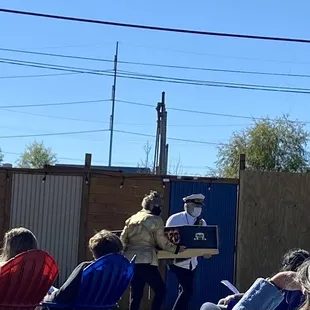 Creatively appointed outdoor space allows for safe movie watching during a pandemic. The hot buttered rum kept us warm during the film, which had excellent sound quality for the location. The seating arrangements allowed for distancing within a group atmosphere. Bring a blanket and friend and do something out of the house...together!
