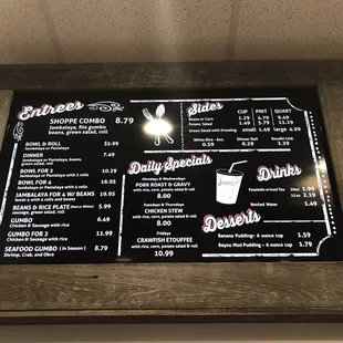 Disappointed would be an understatement! Got there at 7 pm employee seemed to be cleaning up for the night and uninterested in providing any customer service or even interacting. We had never been there before so had a few questions about the menu. A few items were unavailable so he suggested we go elsewhere...should've taken his advice. The chicken and sausage gumbo was terribly greasy. Sausage was dry and I'm pretty sure the "chicken" was actually turkey. It was room temperature at best! The jambalaya was cold and sticky. Again sausage the sausage was very dry. None of the four of us were able to eat, let alone finish our meals. Not surprising there was not am employee in sight to even complain to.