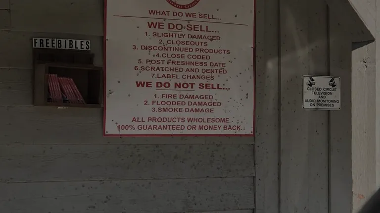 This place is awesome in a twisted sort of way. It embodies everything that is wrong with this country in one small store. The food is, as is suggested, damaged or expired goods salvaged from other places around the country, and in fact sometimes from other countries. The stock is ever-changing. Last time I went, they had just gotten in what looked like half of a shut-down blockbuster video's dvd collection, and about a half ton of baseball caps that had been rejected because of defects. The prices are ridiculous. Years ago, everything was really cheap here. The way it should be, considering it's 2011 and you're buying a smashed and dented product that expired in 2009. But now their prices for these expired, abused products are more expensive than most chain grocery stores charge for fresh, new products. But somewhere in that twisted irony is a humor that makes me love going here. To see the snaggle-toothed country bumpkins of folsum dig through these shelves of damaged goods to pay exorbitant prices for them, because that's the way it has been for years. There are other grocery stores and even a couple restaurants in this little town. The store does offer some other fun objects: "Mystery Cans", my own title for the wrapperless silver cans sitting on one shelf with a 5 or 10 cent price scrawled quaintly upon them in black sharpie. Shaking them, much like a christmas present, can give some clue to their contents, but there is nothing like finally getting one home and opening it to see if your guess was correct. My friends and I have even made a betting game of it on occasion. Deeper in the store you will find sort of pseudo grab-bags. They are clear plastic and you can easily see what is in them, but you are forbidden from opening them or they won't sell the contents to you. These fun little bags are a dollar, and I like to pick them up for fishing bait. Sometimes, it's just fun to go fishing with a melted snickers or a smashed granola bar, or maybe even a bag of barbecue chips. Now friends, the real highlight of this store is the ultra-discounted liquor. Actually, scratch that. 5 years ago, that was the highlight of this store. Now the ultra-discounted liquor is ultra-expensive liquor, but fear not. Salvation lies just around the corner. Literally. Go out the front door and hang a left. Walk past the subway, hang another left towards the foreboding looking warehouse. This discount liquor warehouse around back is owned by the exact same people, except here the exact same bottle of liquor you saw for $20 on the shelf of the salvage store, is $3. So stock up, drink til you run out and then take another drive back to this little slice of americana and laugh until your stomach hurts at just how ridiculous this store is.