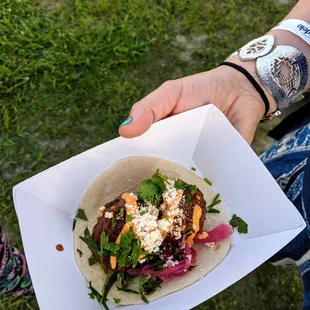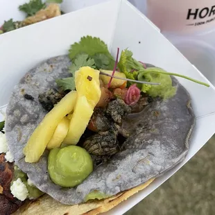 Tacos, tacos, everywhere! I was fortunate enough to win tickets for early bird entry, and I'm very glad I did! We took an uber down to this fest, and meandered our way across the river to find the entrance. I had heard that the long lines and big crowds made getting the food and drinks difficult, so getting there early was the key. It's a completely contained festival, right on the river. We were each given two tokens to vote for our favorites drink and favorite taco. Immediately upon entering, there was a booth dedicated to Ideal Mart. A live DJ, delicious tacos, and shots of mezcal. I figured we were off to a great start! There are lots of opportunities for selfies and swag, with many of the booths giving away freebies. Lots of sombreros and Mexicali kitsch.We were SUPER FULL and NICE and tipsy by about booth 5, but we pressed on -- I mean, we had taken an uber :-)Between the two of us, I think we ate at least 10 tacos and drank all the drinks. One booth even had a rose tequila! Johnny Sanchez won my vote for the taco, and Juan's Flying Burrito won my vote for the margarita. I did, however, love the margarita sorbet at one of the stands. I'm giving this fest 4 stars, because even with the early entry, the lines are LONG. I get it though, it's a popular fest and the servers can only work so fast. It was nice that there were several DJ's and a live band to keep you entertained though. It would've been nice to have some tables or high tops to put your plates on as tacos are difficult to eat with one hand while you have a drink in the other.