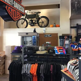 Voodoo Harley Davidson is small and in the heart of the tourist area. The store was well stocked and very clean. The air conditioning was working over time and it felt great getting out of the summer heat. They had three staff members hanging around the cash register and not one of them made a peep while we were shopping. No eye contact, greeting or assistance was offered. This is highly unusual for this brand of store. I definitely got the impression that the three of them were not Harley-Davidson enthusiasts. They had some pretty cute shirts and a nice sale section. I had trouble finding the correct size in the jacket that I was looking so I left without making a purchase. I will return on future visits.