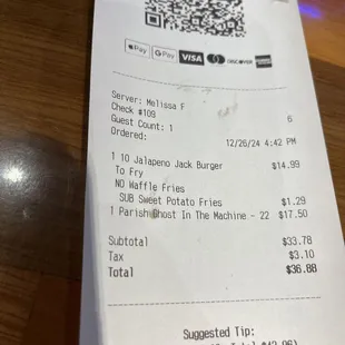 Food was good, service was fine, beer was 17.50. It's always expensive and I expected to pay 10 and be ok with it, but the beer is ridiculously priced and a main reason for not going often. $42 isn't worth it, stick to michelob ultra or don't get beer.