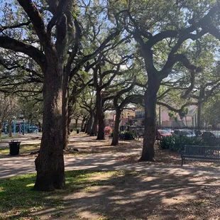 This historic park is an oasis in the Marigny Triangle on the edge of the Frenchmen Street entertainment district. (It's NOT in the French Quarter, as an earlier review indicated). Acres of grass, plenty of sun, shade from the gorgeous ancient oaks, comfortable benches and a fun looking kids' play structure. It's usually very quiet and peaceful, unless a festival is happening, then all bets are off. Occasionally you'll find artists and/or musicians showcasing their skills, but more typically you'll find someone (like me) walking their dog, folks lying around on the grass, reading in the shade or most likely a young mom watching her little ones enjoying the playground equipment. It's an urban park, so unfortunately it's closed after dark for the obvious safety reasons.