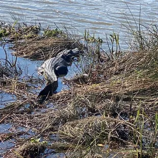 Gator in the water. We saw several gators, adult and juvenile Bald Eagles, a Limpkin, Cyprus Trees, and more.