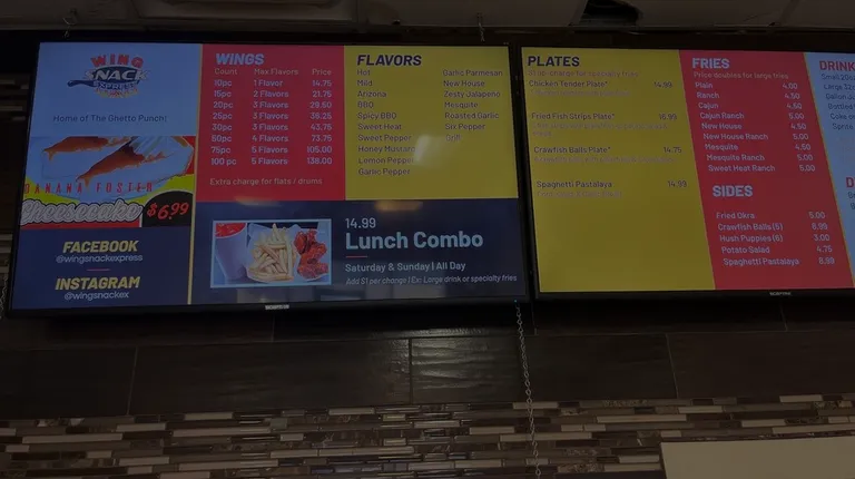 Overpriced and the quality doesn't match. Spent $61 on a 10pc, 15pc all flats (the only option for two flavors), a small fry, two extra dipping sauces, and two ghetto punch. That's EXPENSIVE for two ppl! The lemon pepper were ok but the mild sauce was not good. I'm good on not going back. The price alone made that decision for me to have extremely mediocre wings. Oh and wing restaurants should invest in quality dipping sauces and not some you pour out of a jar. That cheap Bleu cheese is disgusting on those high wings!! The wings might taste a little better if they made their own and bought a quality sauce. It tasted like the Kraft Bleu cheese that you squeeze out of the pack....gross!