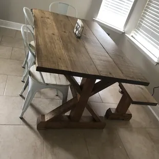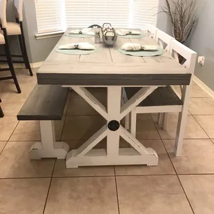 I wish I could give them zero stars. They never painted my chairs and when I brought them back to be painted I never got them back! Horrible business! And the bench and table is poorly made! The table isn't level and the bench dips in the middle. Regret spending my money with them... Wooden It Be Perfect if they didn't steal my money!!!! ZERO STARS!!!New Update: And on top of everything, they blocked me on Facebook!!!