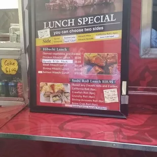 As far as the habachi goes I was very impressed. I got the salmon with dumpling and broccoli and noodle. My coworker got sushi and rice both of us were very happy with our choices next Time I'm gonna try the steak I saw the guy before me get smelled amazing.