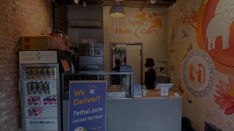 7 Elephants is definitely a hidden gem located between Chinatown and LES. It's well-decorated with vintage & industrial furniture and combined perfectly with the poriginal buildings. The options on the menu are limited but decent enough for a comforting quick-fix when we are craving for Thai food as a weekday lunch. We got 2 appetizers, Chicken Satay ($7.95) & Crab Rangoon ($5.95) and 2 Entrees, Drunken Noodles with Beef ($13.95) & Green Curry Rice Box with Salmon ($13.95). The price varies with different entrees.We were impressed with its portion and the reasonable price. The portion of each is more than enough to share between two people. We ended up doing a to-go for our Rice Box and Chicken Satay. The food was overall delicious, especially the Crab Rangoon. The filling is made with cream cheese & imitate crab meat, which is super creamy and satisfying with special sauce. We also love their salmon, which was juicy and perfect with rich & flavorful green curry. The owners were friendly and passionate about their food, and introduced their menu in details. We had a great experience and will definitely try other entrees next time.