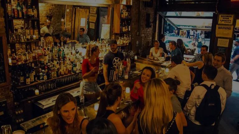 First things first, if you're a college student or a young adult between the ages of 20-25, then you might like this spot. If not, I don't recommend it. I'll explain...We were exploring the East Village in the evening and decided to try Bua, a local bar. A bouncer asked for IDs and we walked into a tight, dark space. There's bar seating and a few bigger tables to the left, but it's very small. You're constantly bumping into people. Not exactly dance friendly.Luckily we were able to snag some seats at the bar. I had to use my iPhone's flashlight to see the menu because that's how dark it is. In addition to drinks, they also have a not-so-impressive food menu. The food choices reminded me of high school cafeteria food (burgers, chicken strips, fries, nachos). The drinks were disappointing, to put it mildly.We ordered:*Tito's Sparkling Lemonade ($14) - Did I just drink water?... LOL. There was no alcohol, no lemonade, nothing sparkling about this.*Friend of a Friend cocktail ($14) - Yuck... it tasted like a cherry cough drop or Nyquil. The description said it contains dark rum, fernet branca, housemade blueberry syrup, lemon, and peychaud bitters. There was nothing good about it. I don't drink beer but my +1 ordered a few and said they were good.The crowd consisted mainly of college kids. I wasn't too big on most of the music choices, especially for a bar atmosphere. I understand that everyone has different music tastes, but ehhh. Big turn off for me. Music plays a big role in setting the mood and atmosphere.Honestly, I only enjoyed this spot because of the person I was with haha. We made the most of the tiny space we had and still danced. Objectively, it's just a small bar with very mediocre drinks.
