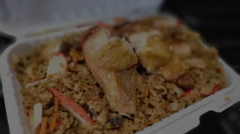 I bought jerk chicken and my 7yr old kid was chewing on tin foil. Food was OK, I bought that chicken fry rice and 2 Chinese cake for 26$ lower your price especially when 78% nyers are not working . Oh and they gave me 1 Chinese cake .1 chicken fry rice I jerk chicken fry rice and 1 black cake for 26$ rip of
