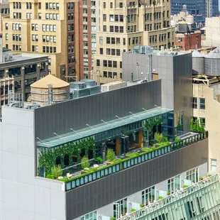Great rooftop bar, in theater district . Great location between theater and Penn station. Has indoor and outdoor seating. Nice views of the city . They have a happy hour with drinks between 4-6pm. Drinks were excellent and potent. Staff were attentive and did not rush. Reservations are recommended. Limited menu, light fare, small plates and apps, but food was good and had a good assortment. Many vegetarian options.