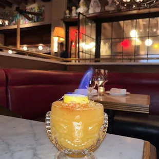 I LOVED THIS PLACE! The ambiance is incredible, low lighting and the restaurant has a fancy-hip vibe. We had a reservation and were seated promptly. Our waiter was fast, got all of our drink orders in and got them back to us so we could start the night. Their menu is short, but the opportunity is endless. The deviled eggs were phenomenal- I can't tell you the last time I've had one let alone at a restaurant. The bone marrow?? Holy crap. That was done and dusted between the 5 of us really fast. So damn good. The tuna tartare was great, and had a nice lemon-lime flavor to it. I got the burger, felt like the best bang for your buck since it came with fries and it was so good. The fries were crispy too. I had an espresso martini and a Cosmo. Both were fabulous. The employee with the tattoos made sure every table was doing great. Wish I got his name (and his number!). Hope to be back soon!