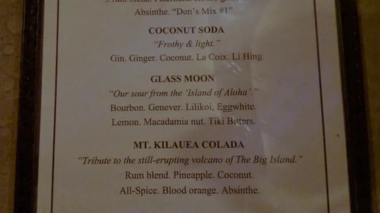 MT. Kilauea Colada: rum blend, pineapple, coconut, all-spice, blood orange and Absinthe =strong and delicious