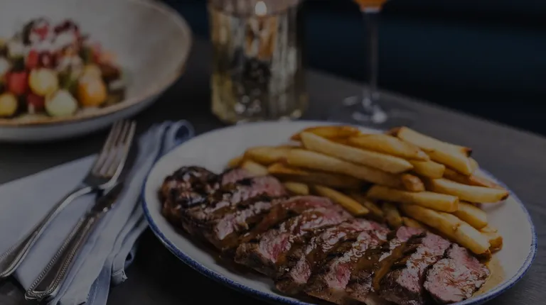 12oz prime ny strip, choice of chimichurri or au poivre sauce.