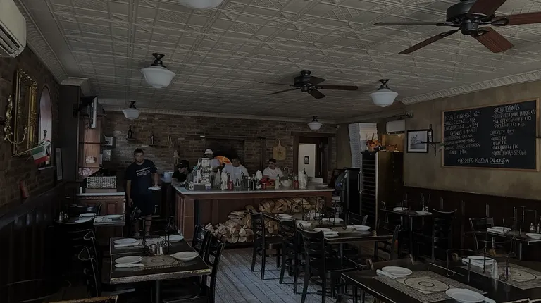 Found this charming hole in the wall pizza place that I see shining as a secret gem of Brooklyn. Ended up here for a late dinner around 10 PM, because several places were already closed, and I'm sure glad the evening shook out that way otherwise we would've never happened upon this place.Fairly small restaurant, maybe 10 to 15 tables. Their menu is strictly pizzas and calzones... We went with the pizza, but I think the calzones are where it's at according to the menu and others ordering around us. The brick oven they cook everything in is out in the open so you get to see you them cooking your food. Since it is brick oven style, your order is done fairly quickly. They seem to have a lot of to go orders at the end of the night, as we were probably one of the last tables to be seated, and only a few other people were at the restaurant when we arrived.There was a limited beer and wine selection, but not surprised as it is a small place. The Brooklyn logger was just OK and my Pinot noir seemed very sweet... Not the vibe I was looking for wine-wise, but it did the trickFor food we went with the white pizza. Seems like the pizzas were fairly pricey, but they were much larger than your regular brick oven type pizza... I would say it was at least a 14 or 16 inch. No complaints here as now we have leftovers for tomorrow evening when we get home from our event! Everyone loves some leftover pizza for a late night snack, am I right?! The pizza was great, and all the cheese was thoroughly baked, so no sliding off the crust. The crust was just crispy enough, there was no need to fold the pizza. We still wanted to try out the pizza sauce so we ask for a side of it to dip the white pizza in. Definitely a must! The sauce was excellent... Not too sweet, not to tangy... it was just right! So you better believe we got a side of that to take home with us for the leftovers!The wait staff was very prompt and attentive. Not necessarily the friendliest, but not rude by any means. I'm sure in the night you were just looking to get the job done so you can focus on closing up, and I'm sure with the amount of takeout orders they were fairly occupied.All in all, it was a very good experience, and would recommend to others. Great vibe for a girls dinner, to catch up with an old friend or even date night like we did... The ambience was low lit with lovely music that was just the right level so you weren't talking too loud or couldn't hear someone.