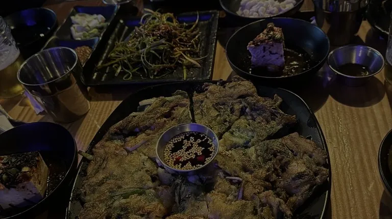 Ambiance (4/5): Located upstairs in a semi-dark setting. Not too loud but felt a bit tight. Not much circulation.Service (5/5): Servers came by frequently to help cook the intestines. They also put some wall dividers to ensure that patrons weren't splashed by the oil.Gopchang - As a noob to intestines dishes, I can confidently say it is not my cup of tea. Several of my group enjoyed them though! The rendered fat was used to make a delicious fried rice on the same skillet ($6/serving).Seafood pancake - generally liked it and the dipping sauce but didn't feel like there was much seafood in there.Beef short rib soup - the beef pieces were extremely large so it was difficult to share. Additionally, the meat chunks were dry and tough.Cold noodles - this was definitely my favorite dish of the night as I loved the sauce.