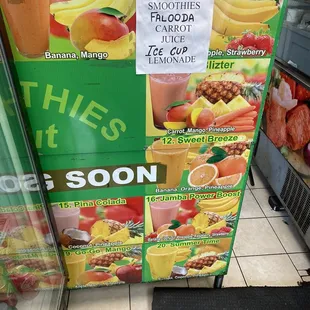 the menu for the restaurant