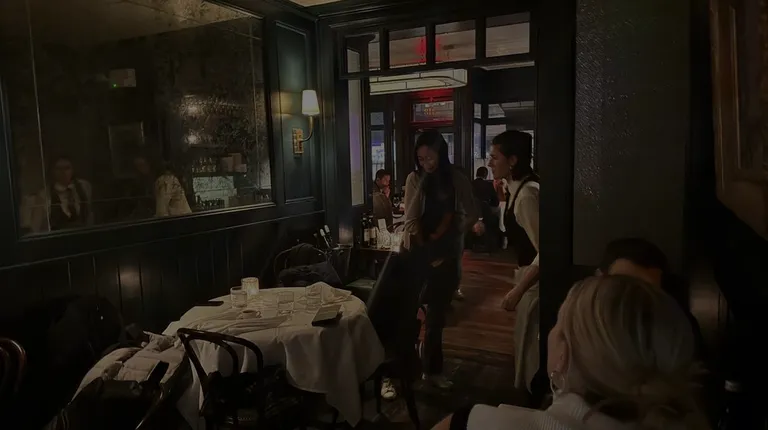 Went in for Saturday brunch. Resy for 2 was simple and easy to grab last minute. There was no wait and we were seated promptly in the main dining room. The ambiance is warm and decor is modern cozy green paneling, giving gastropub feel bridging on steakhouse. Brunch menu is not extensive. You're either having eggs or pancake variations, or burger and French dip panini, which is what we got. $45 buys you a prix fixe option with coffee, cider donuts and mimosa. Opted for Bloody Mary trolly which on paper sounded fun but in practice wasn't that great, since olives and pickle were stale and so were the celery stalks. The cheese stuffed olives turned out to be Boursin which was a hard pass expecting blue cheese. The burger came out more well done (ordered medium) and my French dip beef panini although well toasted, badly needed condiments. Asked for horseradish mayo. Waitress brought out horseradish. I'm like fine now bring mayo lol . The side of jus was a bit bland neither particularly beefy nor peppery or salty. Best part was the cone of rosemary frites fries that were cooked just right with a side of homemade ketchup. They were surprisingly out of Diet Coke. Upon swapping for regular you get a small glass bottle, which explains why they ran out I suppose. Tap water initially was lukewarm and we had to ask for ice. For $80 I've had better experiences although this wasn't terrible. Would consider giving dinner a try but not expecting to be blown away.
