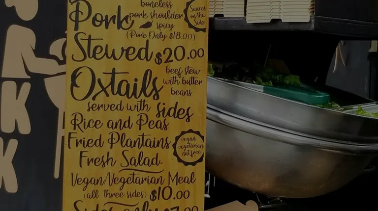 They were at a pop up in Astoria near 30th Avenue and smelled amazing! Really wanted to try the oxtail but they said the pork is good too. The flavors were on point and they packed it full, came to $20 something with tax. Came with plantains and salad, rice , would definitely get again!