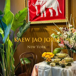 Wow. Just wow. Incredible food, service and ambiance! I don't go into Brooklyn that often but will most definitely go for food and Kaew Jao Jorm is top of the bar!Everything we had was a flavor explosion of salty, tang/sour, and spicy. I love spicy and some of the dishes here had a good kick so be forewarned to ask if you are averse to spicy food. Seafood ingredients were especially fresh and you could taste it.Service was impeccable. Workers were very helpful with recommendations and refilling water. Someone came by with a fancy container of rice and offered refills (trust me, you need to get the rice to sop up all the sauce from other dishes).Highly recommend Kaew Jao Jorm to get your Thai Royal Palace fix in.Ordered:Drinks*pandan lemongrass juice*bael juiceAppetizers*banana blossom salad*phla pla too (Thai mackerel)Entrees*run juan curry (this was the only thing I would probably not order again just because I'd like to try the other curries which sound amazing)*salted eggs with five-spiced porkDessert*Thai gnocchi in coconut milk