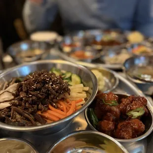 Had been meaning to come for a while, as it's included on the list of places to try in the area. We ended up waiting about an hour (there's a bar two doors down called... Two Doors Down.... that is an easy place to spend some time). The menu is simple: you choose a protein (bulgolgi, spicy squid, pork, or bibimbap) and then it comes with a circle of banchan. We went with the pork and the squid. The mains themselves were delicious and pretty hefty in portion. I far preferred the pork (the squid may have been a bit too spicy at the expense of flavor). The banchan were delicious. There are standards like kimchi, egg, raddish. Surprises are the popcorn chicken, soy-marinated salmon, and my ultimate favorite tri-color Jeon. Comes with rice and a delightfully light soup.I could see the price being a bit much at $32/each (especially since I could probably go to Flushing and have a very similar meal for maybe half the price). Service was super friendly and quick.Worth the try if you're in the area and a fan of Korean food but don't know if it's a must.