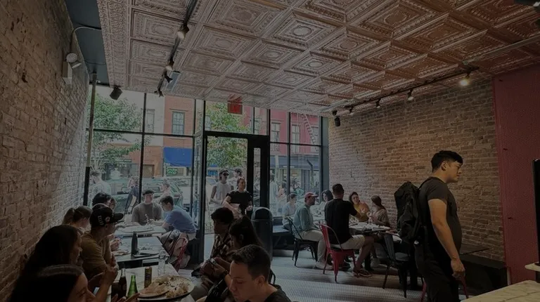 The food here is gorgeous and decadent, but the flavors did not stand out to me as much as I would have hoped. We got the chicken cutlet sandwich with vodka, pesto, and burrata, a slice of the house pie, and the poached pear slice. The sandwich was stuffed to the brim. Easily could be split amongst two people so you get what you are paying for in quantity. But, the sauces that cover this thing just didn't amaze me. The vodka sauce lacked any bright tomato flavor. This can be harder to get in a vodka sauce since it's creamy, but I think the sandwich would really benefit from it. To be honestly I barely tasted the pesto, so I wish this was a much sharper pesto to add a zing whenever you encounter it in the sandwich. The chicken and bread were good quality. I would maybe lower the price and half the amount of chicken in the sandwich. There's so much it's near impossible to take a bite of, and I ended up pulling some of the chicken out and eating it by itself. The house pie was again just okay. I wanted a brighter, fresher tomato flavor and I didn't necessarily get that. The pear slice was also a let down for me. The hot honey only came through on occasion, I would like more consistent spice throughout this because the pears are so sweet there needs to be something to balance it out. Maybe a regular Gorgonzola instead of a sweet one would have also helped me because I didn't get much of the Gorgonzola flavor I was looking for.The interior is fine, it's a bit crowded while you wait for food, but I appreciate that there's a good amount of seating and it moves quickly so you'll likely be able to sit when you eat! Ultimately a fun place to try while I was in the city. Nothing was bad, but nothing stood out enough to bring me back. For how much hype this place received I was hoping for more.