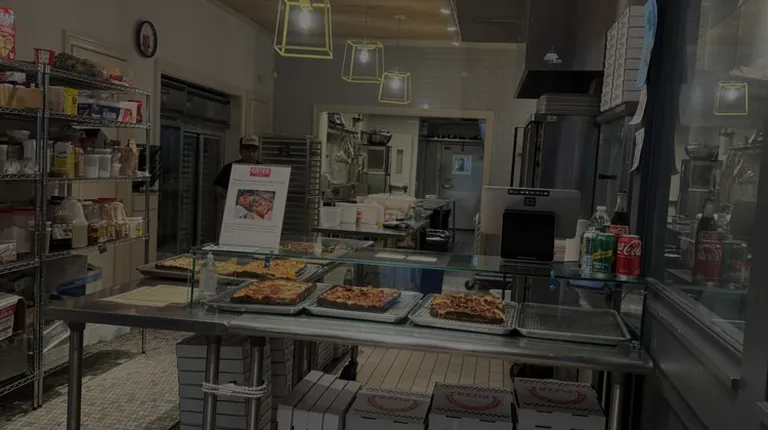 New pizza spot in BK from a native detroiter. Owner was very friendly and the place had a cool vibe with music going and records covering the walls. Flavor of the pizza was good, but the dough was undercooked. As you bit into the square, there was a defining line to show the raw dough. Want to give a better review here, but I'm struggling given the super small slices, the expensive price (slices are $6-9, medium pies in the $20s, larges mid to high $30s), and the undercooked dough