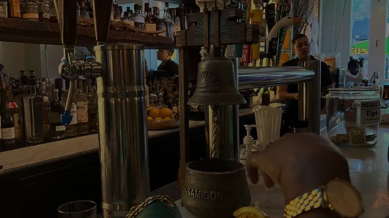 The cocktails exceeded our expectations, but the most memorable aspect of our visit was that we waited for OVER an hour to be seated with a reservation. Why? We were celebrating a friend's birthday and the celebrant picked the place. After 70 minutes passed, the host offered the three of us a shot "on the house" and explained that most diners were finished eating, but were hanging out at the table after paying for their bill. (SN:It appeared as if the wait was much shorter if you knew the host.)Another item worth noting is that gratuity was automatically added for a party of three. Our waiter, Rob said they started to do it after COVID. Meanwhile, at the bar, we ordered jerk wings only (no drinks) and were given "the option" to add gratuity. Interesting right? FOODWe ordered jerk salmon, jerk chicken, a Caesar salad, D' roundabout (sampler plate for 2) and the Trini brown stew chicken. The jerk items are unlike island jerk. It's sauce poured over the item If you are looking for jerk seasoned items, do not order this. Moving on, we were surprised that the Trini brown stew chicken was sweet and not savory. Another item we wouldn't order again. D'roundabout was the better entree (taste and pricing) but it is for two people. The oxtails and curry goat were delicious. It's also well priced at $55. BEVERAGESSoursop rum punch - just say no. It's not what you'd expect. Frozen rum punch - highly recommend. Serves two people. Thursday through Sunday only. $27 Tropical rum punch - highly recommend. $16 The AMBIANCE is definitely the main draw and likely the reason this place keeps a crowd. The DJ played the best island tunes at just the right volume for patrons to sway while waiting, when eating and while hanging out at their tables long after their bill is paid.