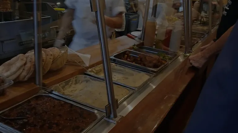 Ambiance (4/5): The back dining area is well lit and quiet! There's plenty of seating and was pretty busy on a weekend lunch hour.Service (2/5):The front part of the restaurant is a fast plate ordering to go. There was about 3 staff members working both stations so it was difficult to get service in the back dining area. Omar Signiture Dish (5/5): Everything on the platter was delicious! The lamb kabob was my favorite and the chicken was incredibly juicy. The protein is seasoned wonderfully with pronounced spices. The seasoned rice complemented well w the meats. The portion was enough for 1.5 persons. The table has bottles of yogurt sauce and hot sauce. Both were delicious complements to the dish but the flavors didn't need it!Sharing plates incurs an extra $5 fee. Groups with 5 or more has an included 20% tip.