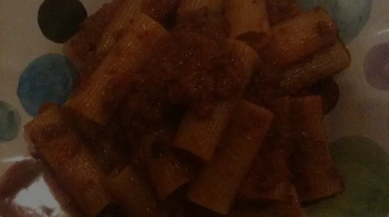 Rigatoni Bolognese (cooked al dente and flavorful sauce)