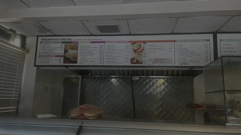Was having a late lunch in the area later in the day but after having skipped breakfast my hubby and I needed something in our stomachs asap. Had been driving around looking for parking for 15 min and gave up and ended up in the garage across the street from the cafe. We walked past the cafe and it was packed which was a great sign. We popped in not knowing what to expect. Pretty much a standard deli with all their meats and salads in the left side coupled with seating. The lady taking our order was patient as we were looking up and down the menu items. We both got bagels- one with eggs, cheese and extra crispy bacon and the other eggs, cheese and sausage. This was probably one of the better bagel breakfast sandwiches had. Not sure if they make their bagels there or have them delivered but they were nice and chewy. Appeared they used 2 eggs than the standard 1 and the meats were cooked perfectly. It was one gooey good mess. The sandwich menu looked good and if I were in the area again I wouldn't hesitate to try one. Def good breakfast place!!