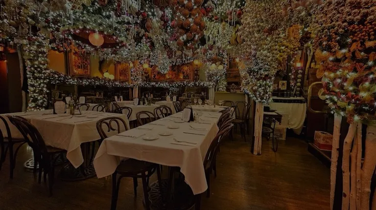 I used to frequent this place 10 years ago before social media turned it into a seemingly unattainable reservation and extremely hard bar to grab a drink at due to the hype around their Christmas decor. As others have noted, getting a reservation here is near impossible, which is fine since the food is nothing to write home about, you're here for the ambiance. Drinks will set you back $30 a pop no matter what you order (a beer might be slightly cheaper, but I'm talking slightly), so might as well partake in one of the seasonal concoctions they have, sip slowly and enjoy.The Christmas decorations here really are better than anywhere else you'll find in the city as far as Christmas bars go, so if you really want to take this all in my recommendation would be to come here on a weekday during the day if you can swing it.On my last visit here I showed up around 1:30 pm on a Monday (on the first Monday in December) and while there was a bit of a bar crowd it was manageable. They've done away with their bar stools so its standing room only, which I assume is to help with turnover to move the line that forms to get into this place along as much as possible. Bartenders and staff are still as nice as I remember them to be, which is shocking considering the sheer volume of people they serve around this time of year.Pro tip: Their decor goes up in fall and stays up through spring, so if you really want to see it without the crowds, come in late January or early November.