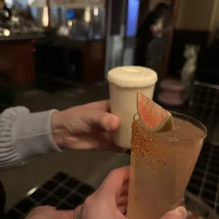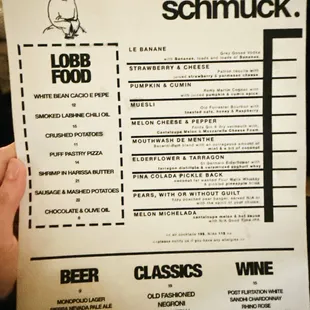 TLDR: a new favorite NYC cocktail bar!Schmuck has it all for me. Interesting cocktails with flavor combinations I have never had before, quick service with fun staff that keep you smiling all night, yummy bites, and music that keeps the night going.I'm such a sucker for familiar foods recreated into cocktails. My favorite was the Larb Gai. I grew up eating Larb and I was just impressed. I also really enjoyed the Blanca which was a green apple, celery, mustard, and ginger cocktail. For a dessert-like drink, I'd pick the Le Petit Fizz; a hazelnut praline and passionfruit Ramos gin fizz. I will say that the drinks were pretty low ABV, so this isn't a place to go to if you wanna get drunk. Unless you get shots and classics lol. Or drink the whole menu I guess. Overall: I've been to many bars around the world and Schmuck (unsurprisingly) deserves its hype.