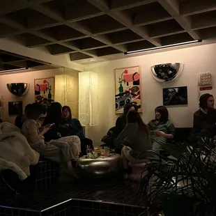 Really a unique bar with two separate bar entrances. The lower bar is more laid back and a small area that's seat yourself and the upstairs bar has a reservation system by putting your name on a list. They text you when your table is ready and it took my friends and I 2.25 hrs to get seated when we arrived at 6:30PM on a Wednesday!The staff are all really nice but the seating is a little bizarre. We were out on stage and the table was so low compared to the seats. We ordered the bread with tomatoes (8/10 really did taste like tomatoes which was wild, le petit fizz (9/10 tasted like a dessert), fika (2/10 my friend sent it back it was a little strong/bitter), and blanka (7/10 definitely was a strong celery/mustard flavor)!For food we shared the white bean cacio e Pepe (4/10 I really wanted to like this but it was a little off) and the puff pastry pizza (10/10 was so different than we expected but delicious!)Overall fantastic experience and vibes and super unique food/drinks!