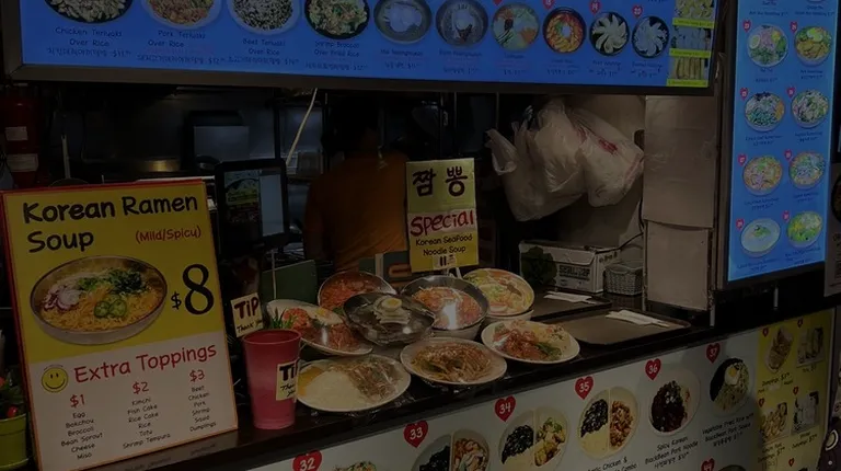 For what it's worth, this place is a solid 3.5-4 stars just by convenience, efficiency, cost, and taste. Not the best food that you'll ever have, but it will satisfy your cravings, especially on a Fri/Sat/Sun night when other sit-down spots in the area are full. 10% discount- cash pay.You can make it a casual date night by finding a place in the food court to eat, or order to go (which I often do).I love their champong here: large portions, generous vegetables/shrimp/seafood. They give you a buzzer too, so you don't have to wait around in the crowded area as you're waiting for your food.I come time and time again.