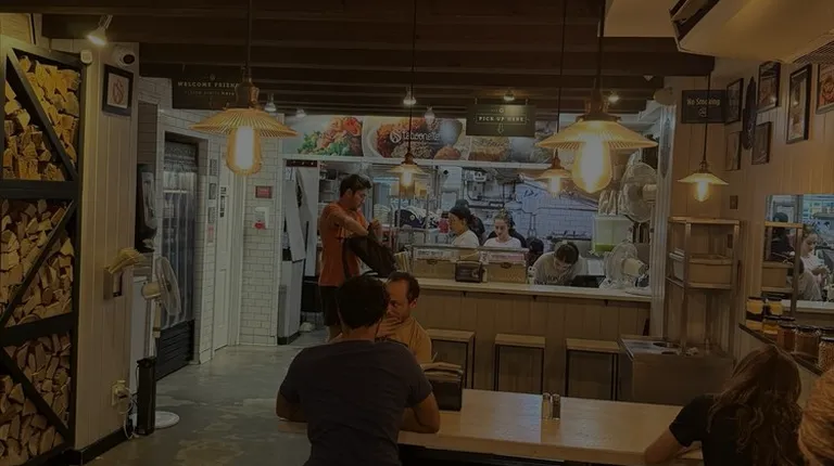 4.5 starsIf you're in the Union Square area and enjoy Mediterranean food it's definitely worth your time to stop in and try Taboonette. I ordered hummus bowl with chicken and a side of falafel (4 pcs). The bowl comes with hummus, chickpeas, paprika, fluffy pita bread and a small container of schoog (spicy green sauce) on the side. The hummus bowl arrived warm and the falafel appeared to be fresh out of the fryer. The bowl was definitely a generous portion and freshly prepared. The falafel was fluffy on the inside the crispy on the outside. The food was ready after less than a 5 minute wait.The menu has some nice options in addition to the hummus bowls for those with bigger and smaller appetites, including salads, pitas and full plates with rice and a protein(s) option. The space is not too big but has enough space so patrons don't feel crowded. There are a few big communal tables along with counter seating. Seating may get tight during the lunch/dinner rush but folks were sharing tables and turnover was pretty quick. The space was clean and welcoming and the staff were friendly. I found the restaurant easily, as it's a short walk from Union Square.