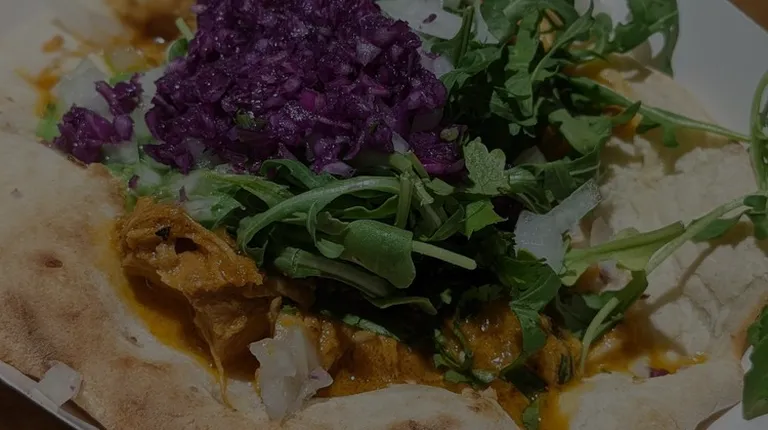 Very tasty and fun twist on Indian cuisine!You'll get full off of one naan taco, or two roti tacos. I like that they offer two different types.There aren't too many options for dairy-free folks, though. Only the vegetarian option which was surprising to me because there are a ton of dairy-free dishes in Indian cuisine. Value is reasonable and in a good location, with both indoor and outdoor seating.