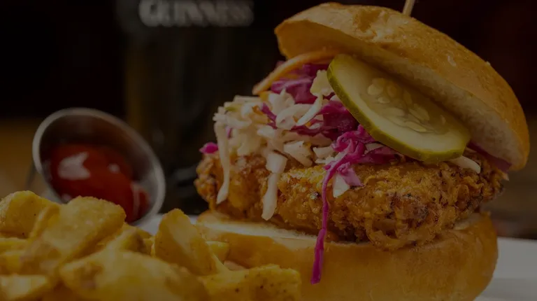 Came here to meet up with a group of friends visiting from out of town for brunch. I think it was a group of 12 or something like that, anyways, we were seated on the 2nd floor. We wanted the rooftop, but due to the rain that day, they closed it off. It is what you expect from a tavern: dark, gloomy, sticky tables.Service could have been more attentive as we had a hard time finding a waiter/waitress at times when our large group needed something. The food also did take a while as they insisted on serving all of the food at once. The food came out instantly for those food that didn't come out in the first wave as those orders were "lost".I ordered the Fried Chicken Sandwich ($20) and opted for the Parmesan Truffle Fries (+$2). The chicken was well battered and the smoked paprika aioli was what made the sandwich taste great. The fries is as good as you expected it to be.Overall, food tasted great, but the service needs a lot of work.