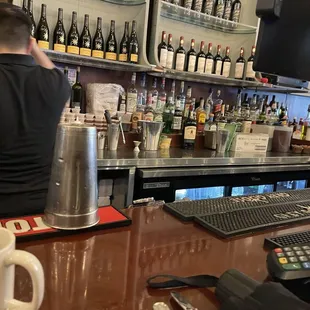 a bar with many bottles of wine