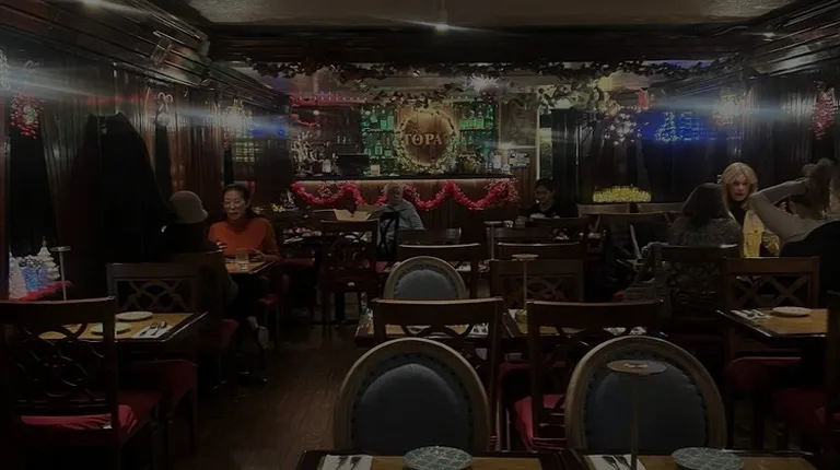 Topaz has been here since the 1990's. This was my first time back in many years. The location is perfect if you're attending a show at City Center or Carnegie Hall. We had a reservation and our table was available when we arrived, even though the place looked full. The service was friendly and efficient. Multiple servers checked on us and they seemed to be working well as a team. The decor was cute - they've hung a combination of Christmas and Valentine's decorations. We shared just a couple of dishes and dessert. The curry, noodle special was delicious. The mixed veggies were flavorful. Dessert was a surprise. I think they called it lychee creme brule. It was like a cheesecake with brule topping with a side of lychee, berries, and whipped creme. It was rich and delicious.