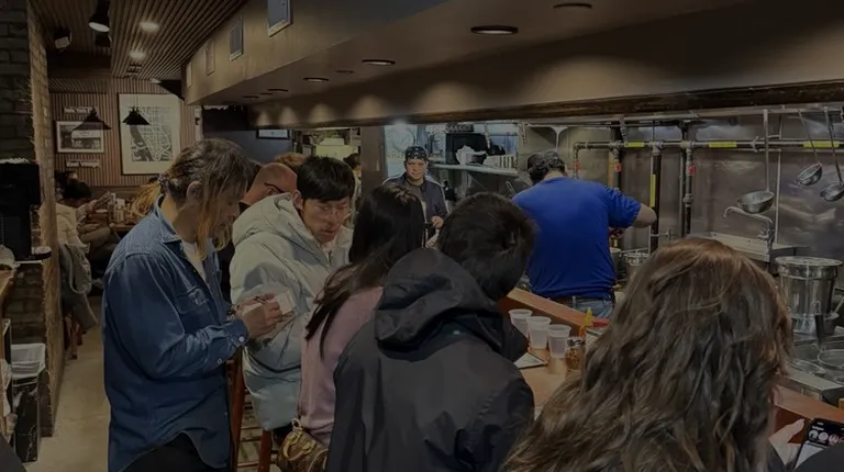 THIS PLACE IS CASH ONLY WITH A $10 MINIMUM PER PERSON. No frills udon shop serving some other classic Japanese fare on st marks. Ordered the takoyaki, curry udon, niku udon, and ebi-ten on the side. Total after tax and tip was a little under $50 which by NYC standards I'd say is very fairly priced. Everything was solid, but not mind blowing. Still think it's a great casual spot to go if you're looking for some reasonably priced food. I'd definitely come back.Space is pretty small. Mostly counter seating with a few tables in the back. Would not recommend for a big group. 2 is ideal. 4 would be max imo. Service can be a little slow since it's only like 2 people working, but they get food out at a pretty reasonable clip and keep things moving. Would recommend!