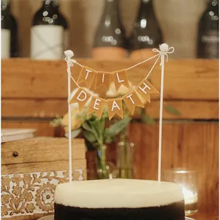 a table with a sign on it