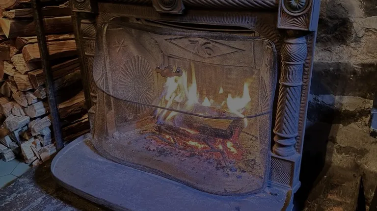 a fireplace in the kitchen